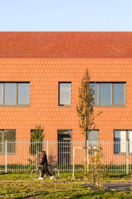 Un éco-collège à l’architecture sobre où la terre cuite Koramic s’étend de la toiture à la façade. Le modèle Actua en Grésé Bourgogne valorise un projet durable, harmonieux et intemporel.